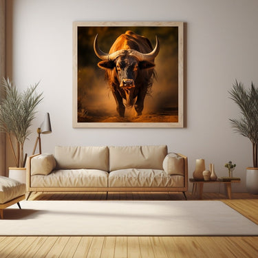 This painting with a bull immortalises the running of a bovine, leaving behind a cloud of sand. A striking work that's sure to transform your decor.