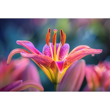This lily painting captures the purity and majesty of this iconic flower. Against a neutral background, the lily stands out elegantly, immediately attracting attention with its simple yet sophisticated beauty. The graceful shape of the flower is highlighted, with its slightly curved petals and centre adorned with fine stamens.