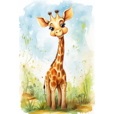 Create a new atmosphere in your child's room with this watercolor baby giraffe painting.