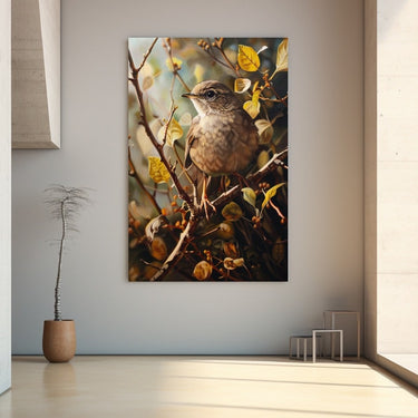 This nightingale canvas transports us to the enchanting world of this songbird, capturing a moment of tranquility and natural beauty. The nightingale is perched gracefully on a delicate branch, its detailed silhouette standing out against a blurred background.