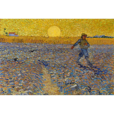 Bring a touch of art history to your home with this magnificent reproduction of Vincent Van Gogh's famous painting ‘The Sower’. Painted in 1888, this iconic work illustrates the artist's unique vision of the bond between man and nature, with a sower in action in the middle of a field. The canvas is dominated by rich, vibrant colours, with bright yellows and deep purples expressing the energy and intense light of the Provençal landscape.