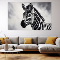 The black and white zebra canvas offers striped equine enthusiasts a sublime shot. An out-of-the-ordinary capture, ideal for displaying in your home.