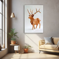 This origami deer painting offers a unique artistic perspective on the beauty of this majestic animal, transforming its majestic form into a delicate, geometric interpretation. Each fold and line is carefully arranged to capture the essence of the deer's silhouette, while giving it an almost abstract and stylised quality.