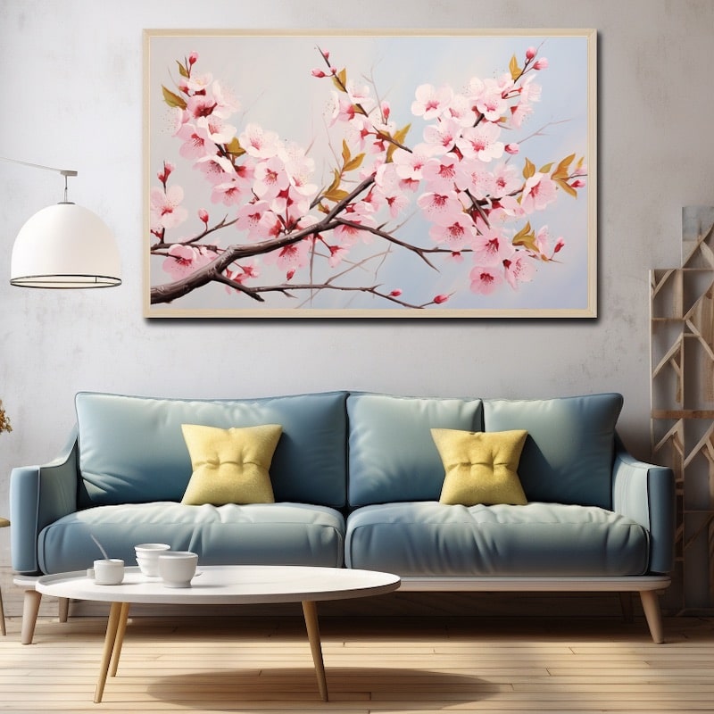 This Japanese cherry blossom painting is an artistic work that captures the delicate and emblematic essence of this ephemeral bloom. At the heart of the composition, the cherry blossom is depicted with artistic grace and precision, capturing the poetic beauty of the spring season in Japan.