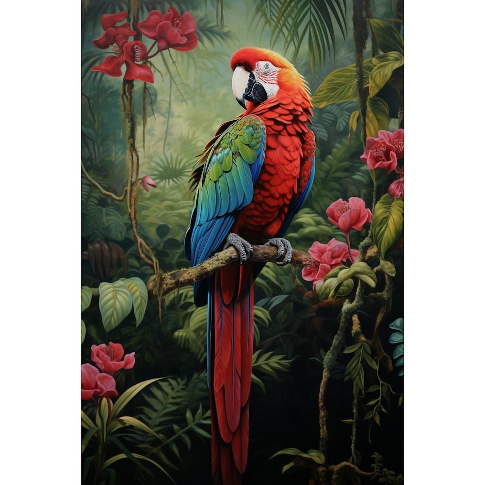 This parrot bird painting offers a unique and authentic artistic representation of this exotic bird. Every detail is meticulously created by hand, capturing the vibrant beauty of the parrot with a personal artistic touch.